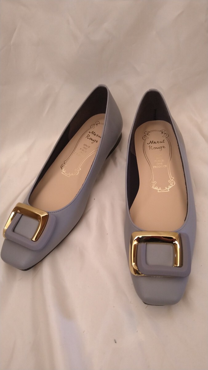 - 新品【23.5cm】メタルルージュ 晴雨兼用 スクエアトゥ バックル パンプス フラットヒール