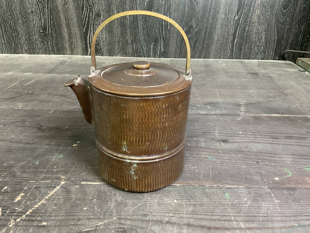 - N033 水次薬缶 割手 竹節形水次 水注 茶道具 銅製