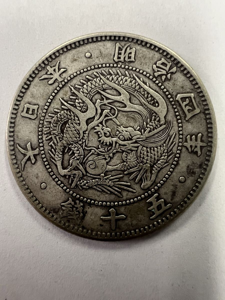 - KA銀100★超希少 レア 小型 大竜 明治4年 五十銭 旭日竜50銭銀貨 コレクター放出品