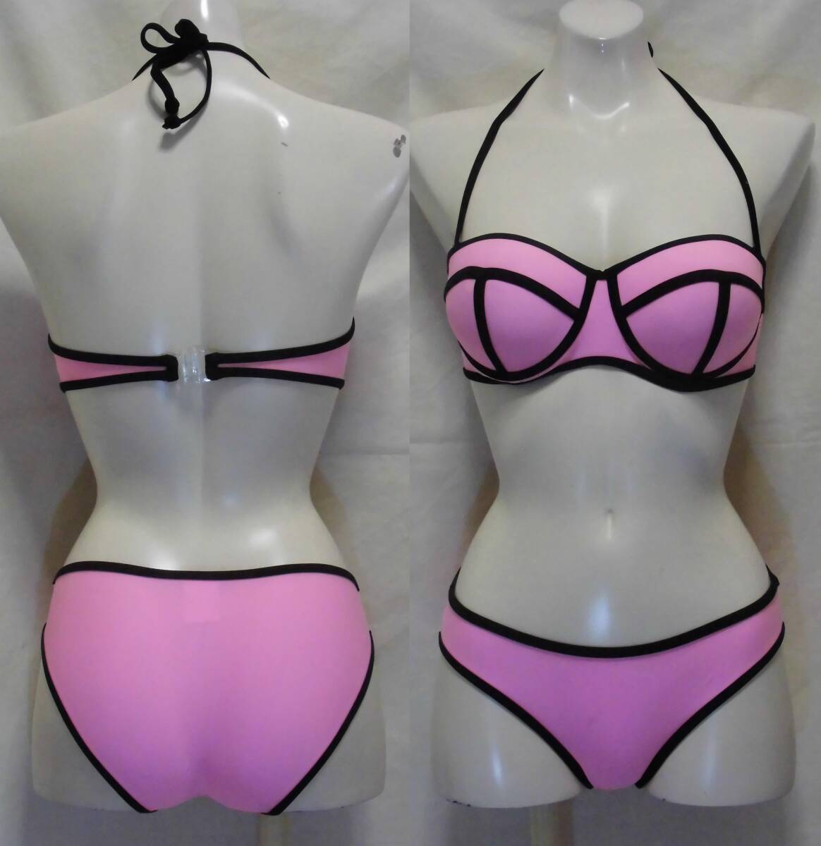 > 【新品未使用】ビキニ水着 [ワイヤー&カップ有り/NYLON82%+SPANDEX18%~強ストレッチ生地] (サイズ:Free[身幅:約70~80cm]/ピンク色)