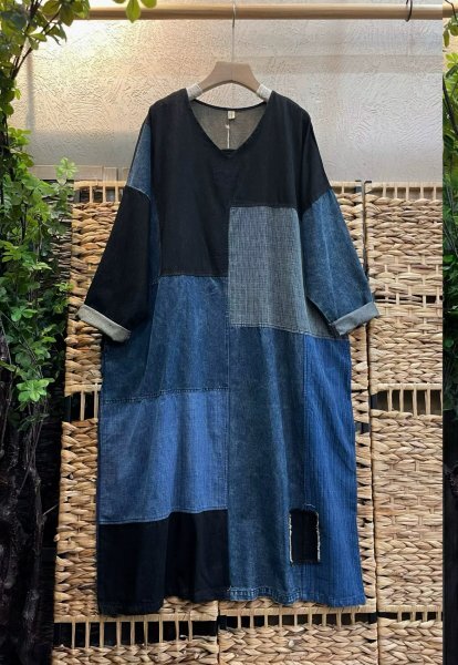- jd 2509 ワンピース デニム生地 ジーンズ ゆったり 洋服ミックス アンティーク風 ロマンファッション ナチュラル フリーサイズ 縫い合わせ