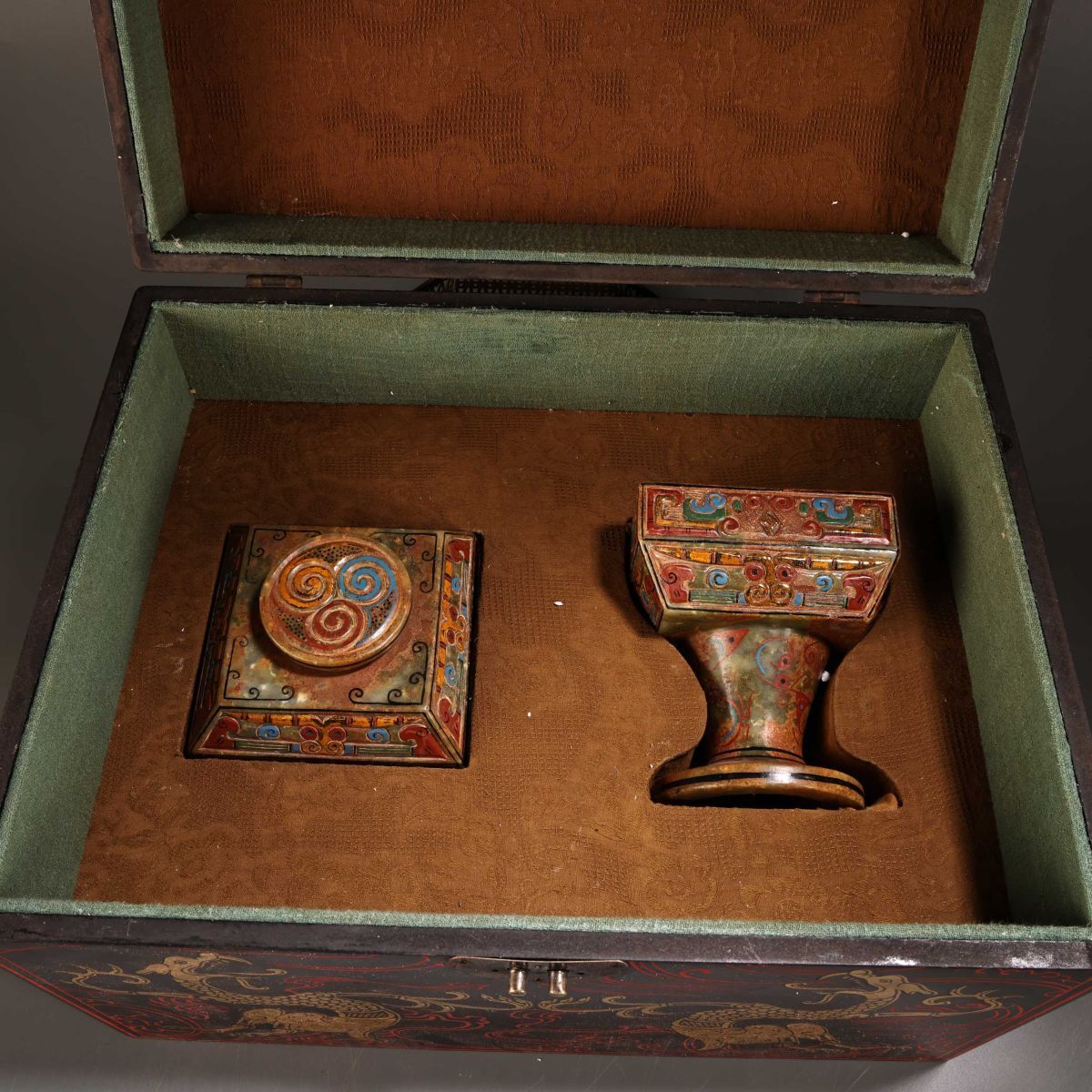 - 永し 清時代 和田玉 彩絵 香爐 漆盒 極細工 置物擺件 古美術品 時代物 古董品 収集 旧家蔵出 中国唐物 A54