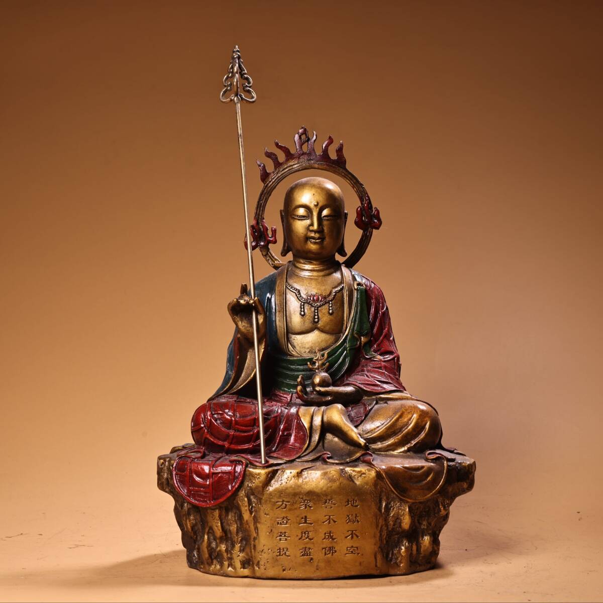 - 蔵友旧蔵出 銅製 彩繪 描金 地藏王菩薩像 希少珍品 貴重品 置物 古賞物 密宗密教 供養品 仏教美術品