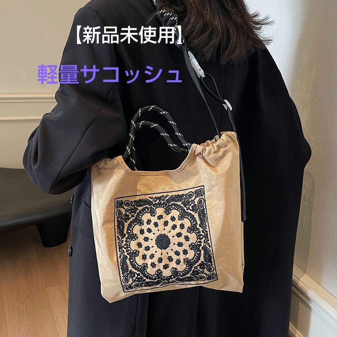 - 刺繍 サコッシュ ショルダーバッグ ベージュ バンダナ 軽量 シンプル