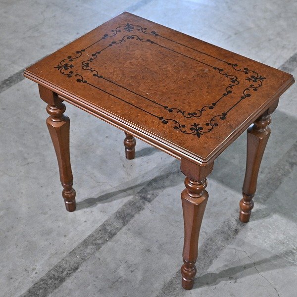 - アンティーク調 サイドテーブル 象嵌装飾 コンソール クラシック 猫脚 木製 ヴィンテージ 高級 バーズアイメイプル風 リビング 寝室