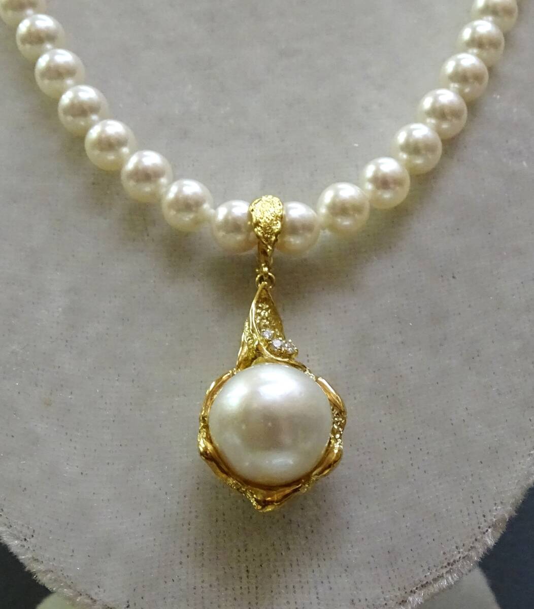 > 3通り!白蝶パールペンダント&アコヤ真珠ネックレス・2個セット・消費税・送料込み・K18開閉式・新品・未使用・鑑別書