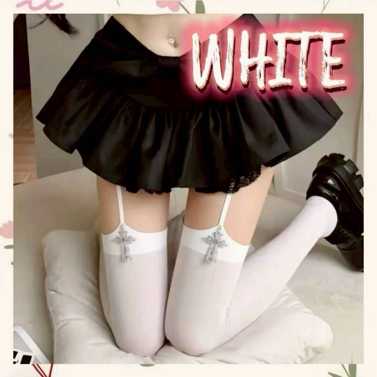 - ストッキング ガーター風 タイツ クロス ハロウィン サイハイ コスプレ 白