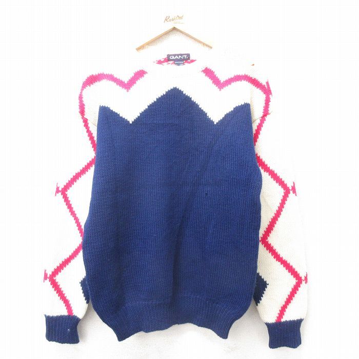 > M/古着 GANT 長袖 セーター メンズ 90s ウール クルーネック 青他 ブルー 25feb08 中古 ニット トップス