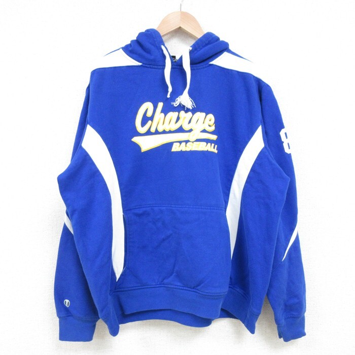 > L/古着 ホロウェイ 長袖 スウェット パーカー メンズ Charge 野球 ツートンカラー ラグラン 青他 ブルー 25apr04 中古 スエ