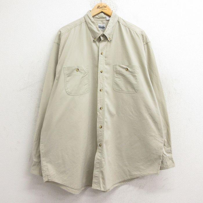 - XL/古着 ベーシックエディションズ 長袖 シャツ メンズ 00s 大きいサイズ ロング丈 コットン ボタンダウン 薄ベージュ カー