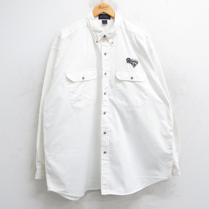 > XL/古着 長袖 シャツ メンズ NFL セントルイスラムズ 大きいサイズ ロング丈 コットン ボタンダウン 白 ホワイト アメフト