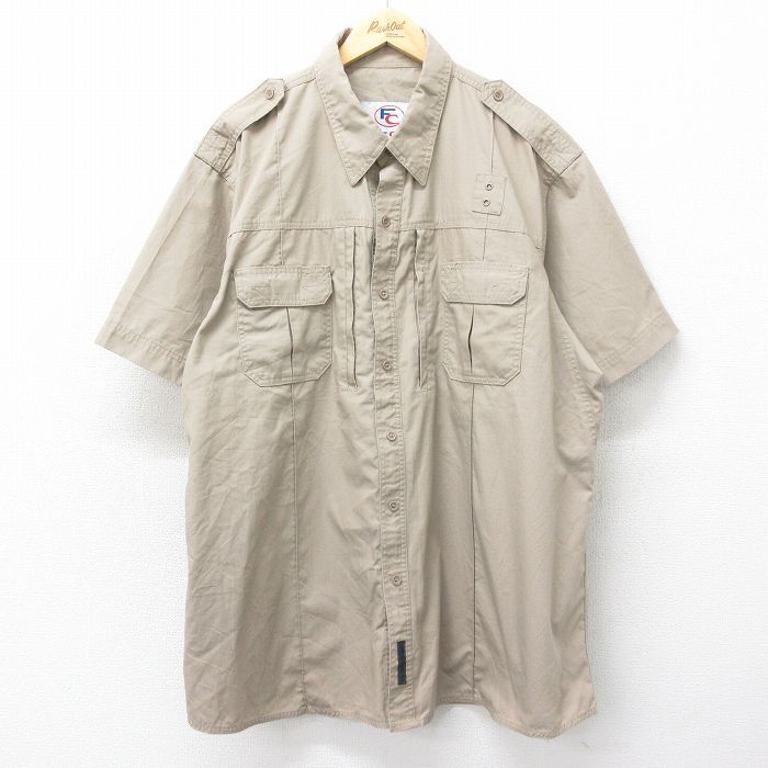 > XL/古着 半袖 ワーク シャツ メンズ リップストップ 大きいサイズ ロング丈 ベージュ系 カーキ 24apr19 中古 トップス