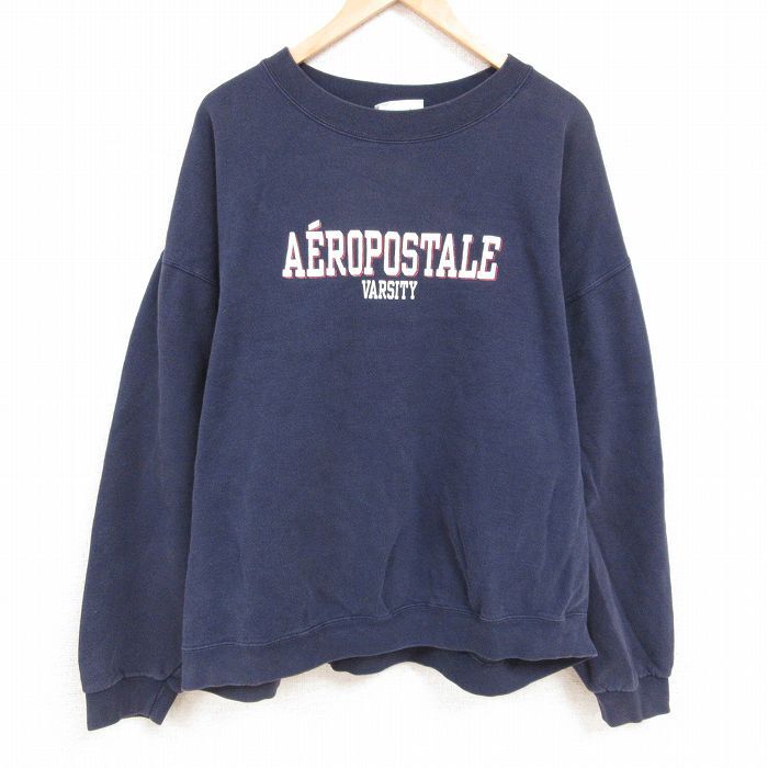 - XL/古着 長袖 スウェット メンズ 90s エアロポステール 大きいサイズ クルーネック 紺 ネイビー spe 24dec14 中古 スエット