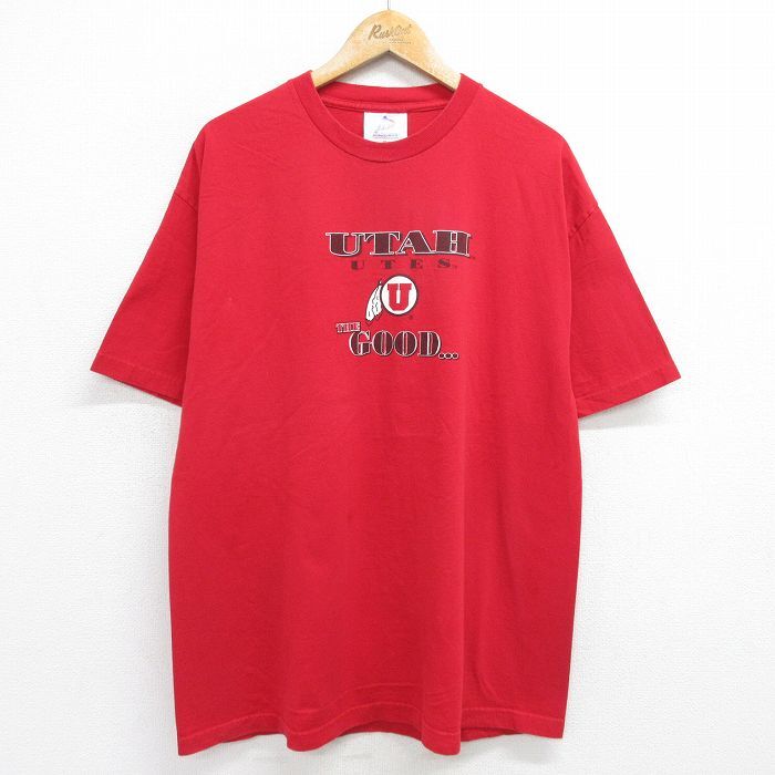 - XL/古着 半袖 ビンテージ Tシャツ メンズ 00s ユタユーツフットボール コットン クルーネック 赤 レッド 24jul22 中古
