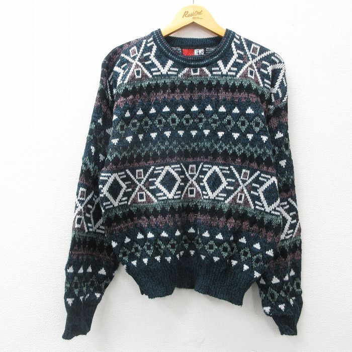> L/古着 TODAYS NEWS 長袖 セーター メンズ 90s アクリル クルーネック 緑系他 グリーン 24nov19 中古 ニット トップス