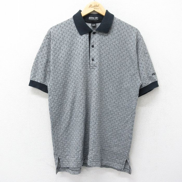 - L/古着 半袖 ポロ シャツ メンズ 90s カワサキ 総柄 コットン 黒他 ブラック 24aug07 中古 トップス