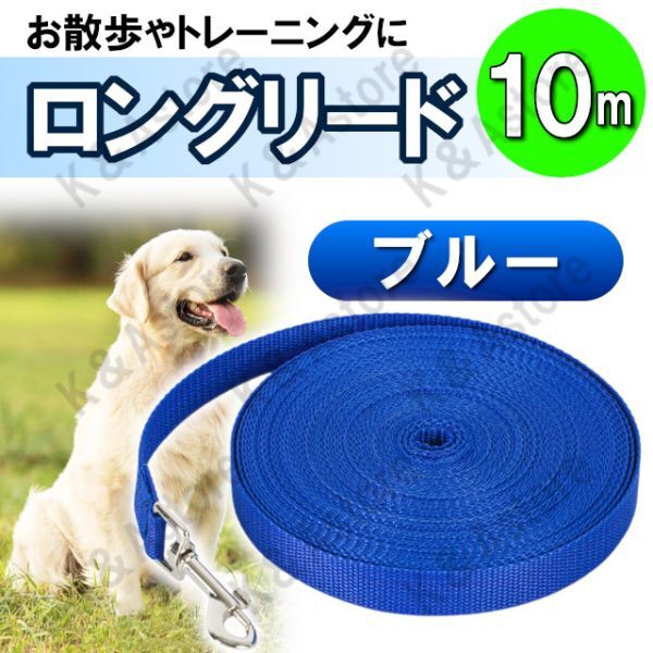 - ロングリード 10m 犬用 ドッグラン ペット 散歩 小型犬 中型犬 大型犬 長い リード 絡まない しつけ トレーニング ブルー 青