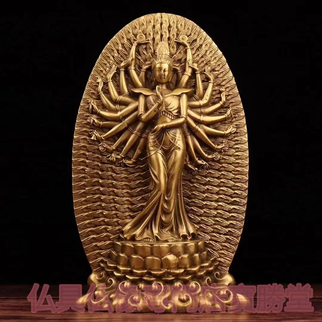 - 【寶勝堂】千手観音菩薩像 銅器 チベット仏 観音像 仏教美術 銅製 置物 高さ約26cm