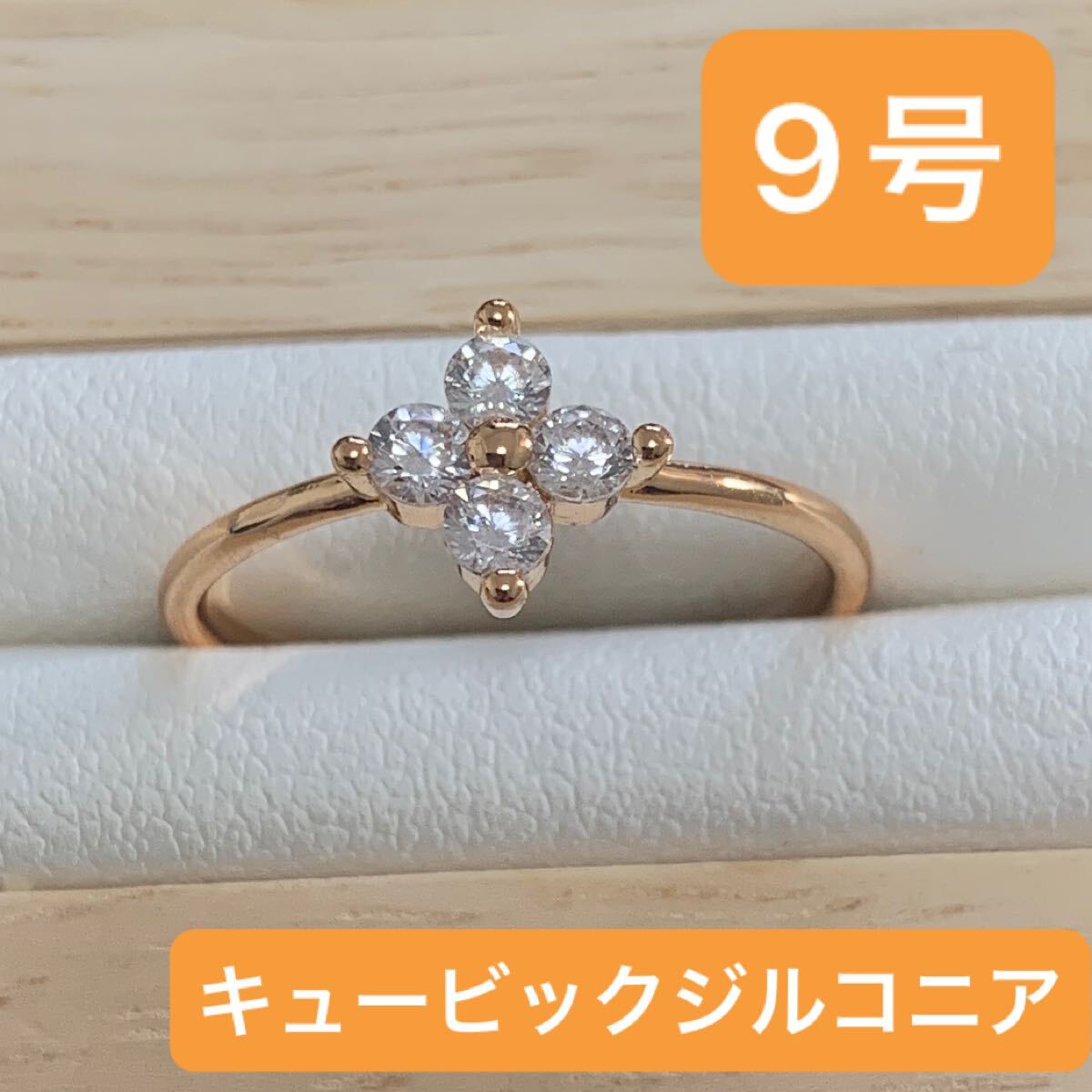 - キュービックジルコニア フラワー ワンポイント リング 指輪 ゴールド 9号