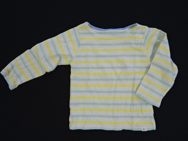 - ビームスミニ BEAMS mini Tシャツ ロンT 長袖 白×イエロー×ライトグリーン ボーダー キッズ 100cm 男の子 女の子 USED 古着