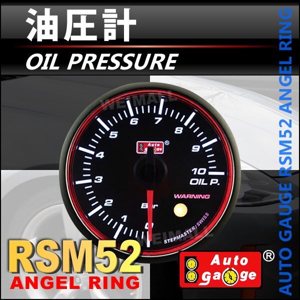 > オートゲージ 油圧計 OIL 52Φ エンジェルリング スイス製モーター オープニングセレモニー ワーニング機能付 ブラック autoguage 52RMOPB