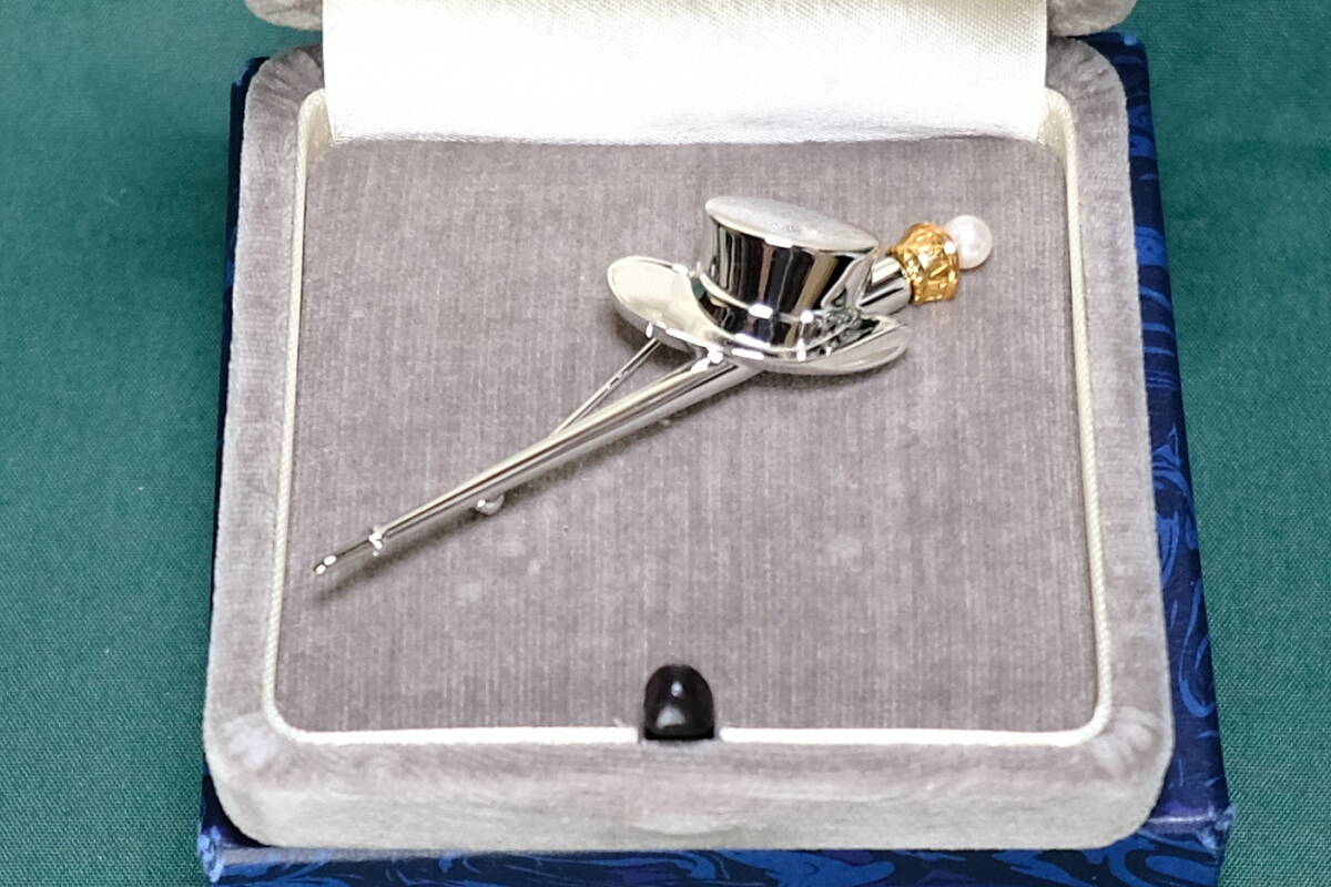 - 送料無料 値下げ 中古 MIKIMOTO ベビーパールダイヤハットブローチ k18/シルバー