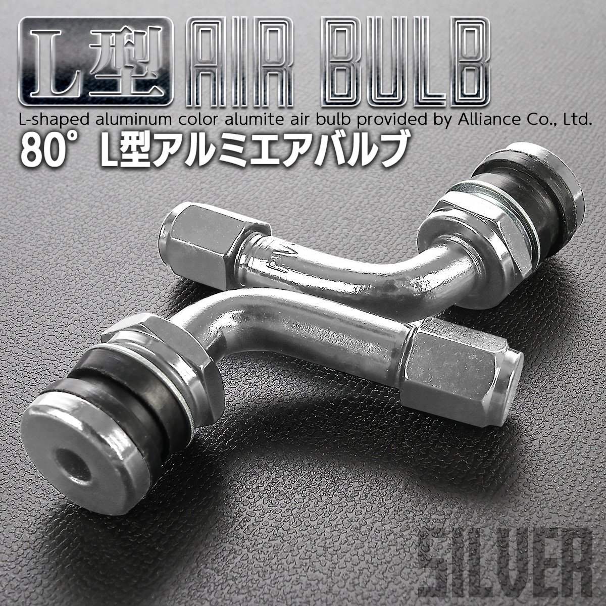 - 汎用 アルミ削り出し エアバルブ L型80度 チューブレス専用 ホイール周りのドレスアップに 2個セット シルバー S-315-S