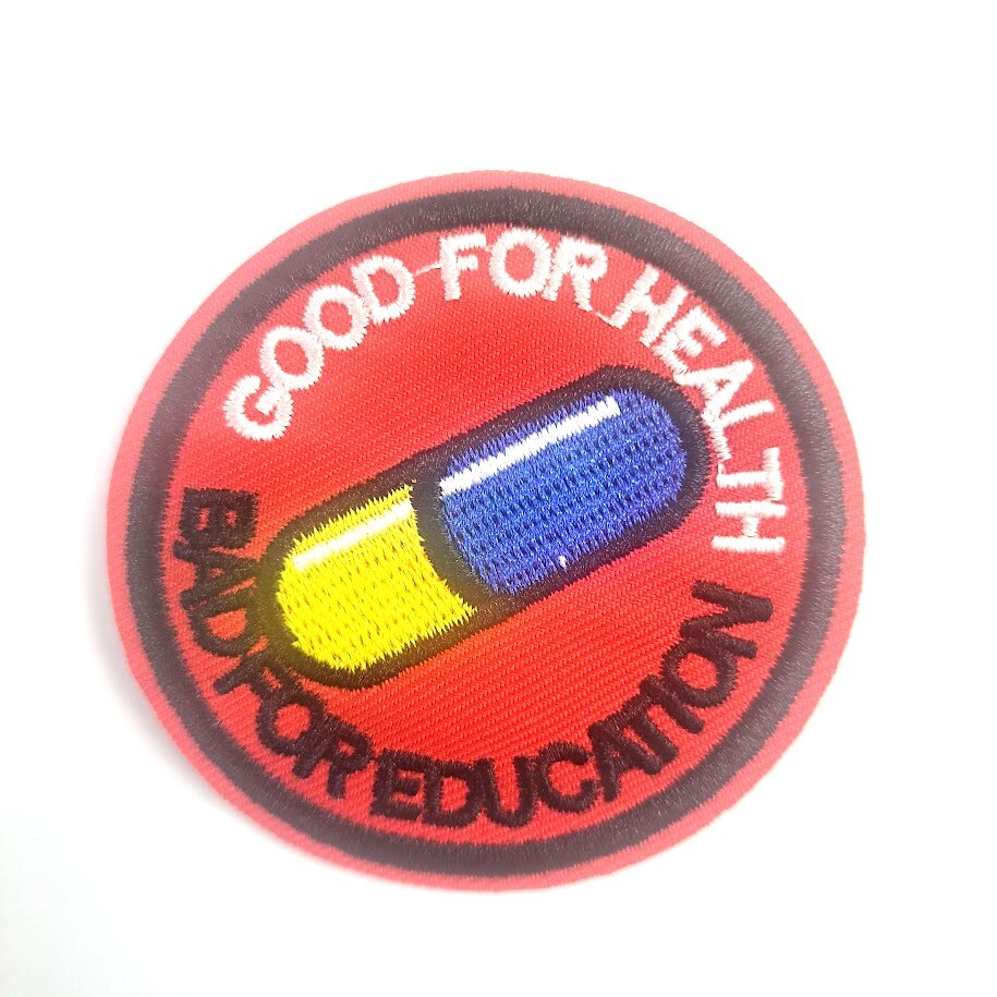 > 刺繍ワッペン アイロンプリント GOOD FOR HEALTH BAD FOR EDUCATION 64mm×64mm 健康優良不良少年