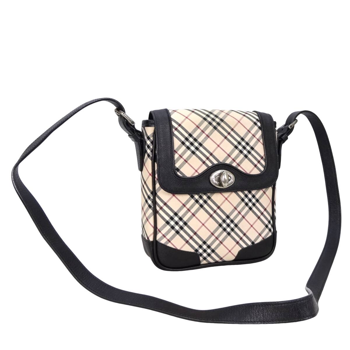 > 本物 良品■バーバリー■ベージュ ノバ チェック キャンバス ブラック レザー 斜めがけ ショルダーバッグ