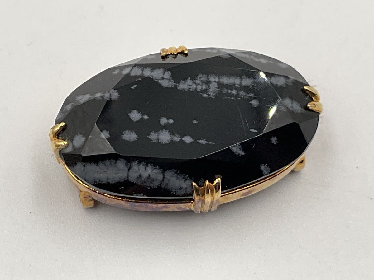 > Silver スノーフレーク・オブシディアン 帯留め 黒曜石 天然石 大正浪漫 昭和モダン アンティーク着物 和装小物 アクセサリー 着物