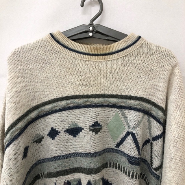 - A621 アンジェロリトリコ XXL ユーロ古着 ネイティブ柄 アクリル混 長袖 ニット セーター ベージュ系 Angelo Litrico メンズ