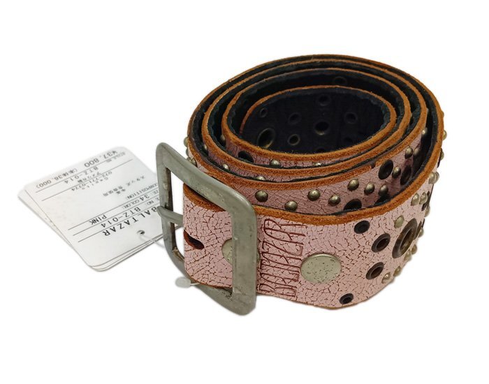 > BALTAZAR バルタザール ベルト BTZ-014 ピンク レザー 牛革 スタッズ シルバー金具 タグ付 箱付