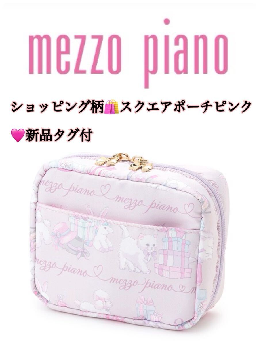 - メゾピアノショッピング柄スクエアポーチピンク新品タグ付