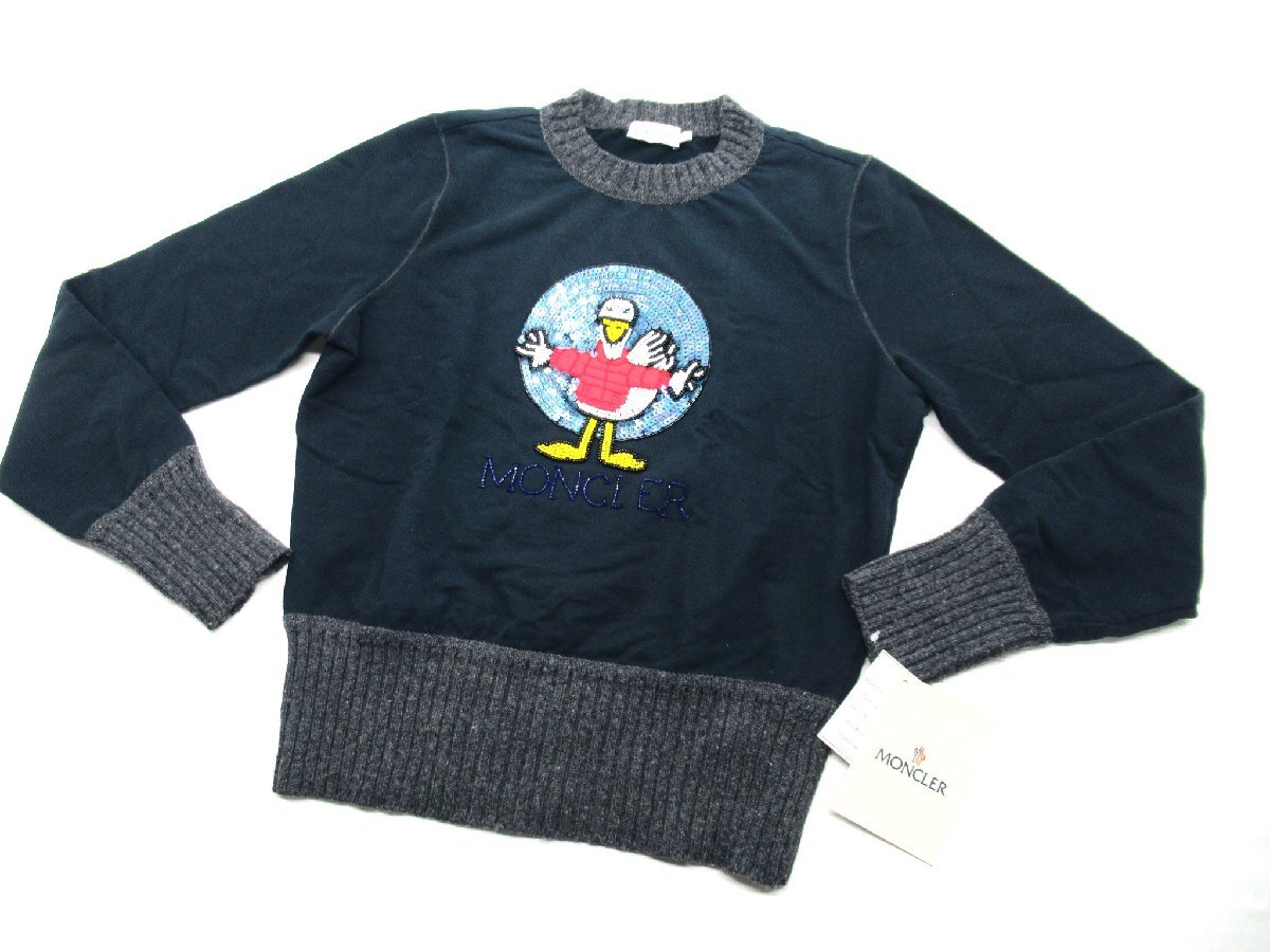 > ★【B送900円】2444 タグ付き MONCLER モンクレール ニット切替トレーナー ビーズ/スパンコール ダック ネイビー×グレー L