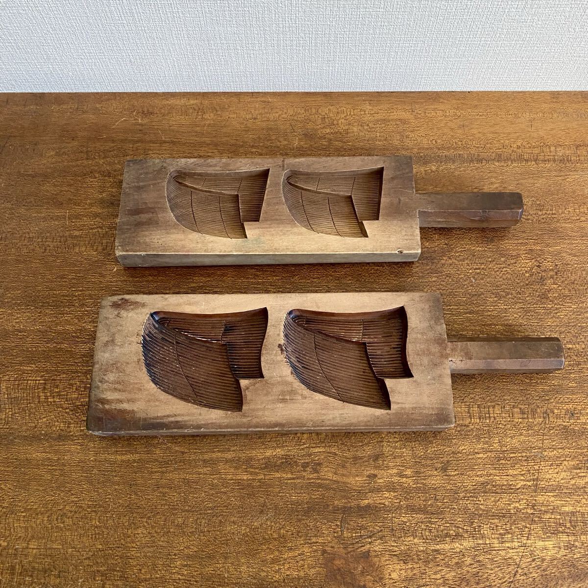 - アンティーク 菓子木型 菓子型 2点セット / 木製 落雁 和菓子 古道具 当時物 / C