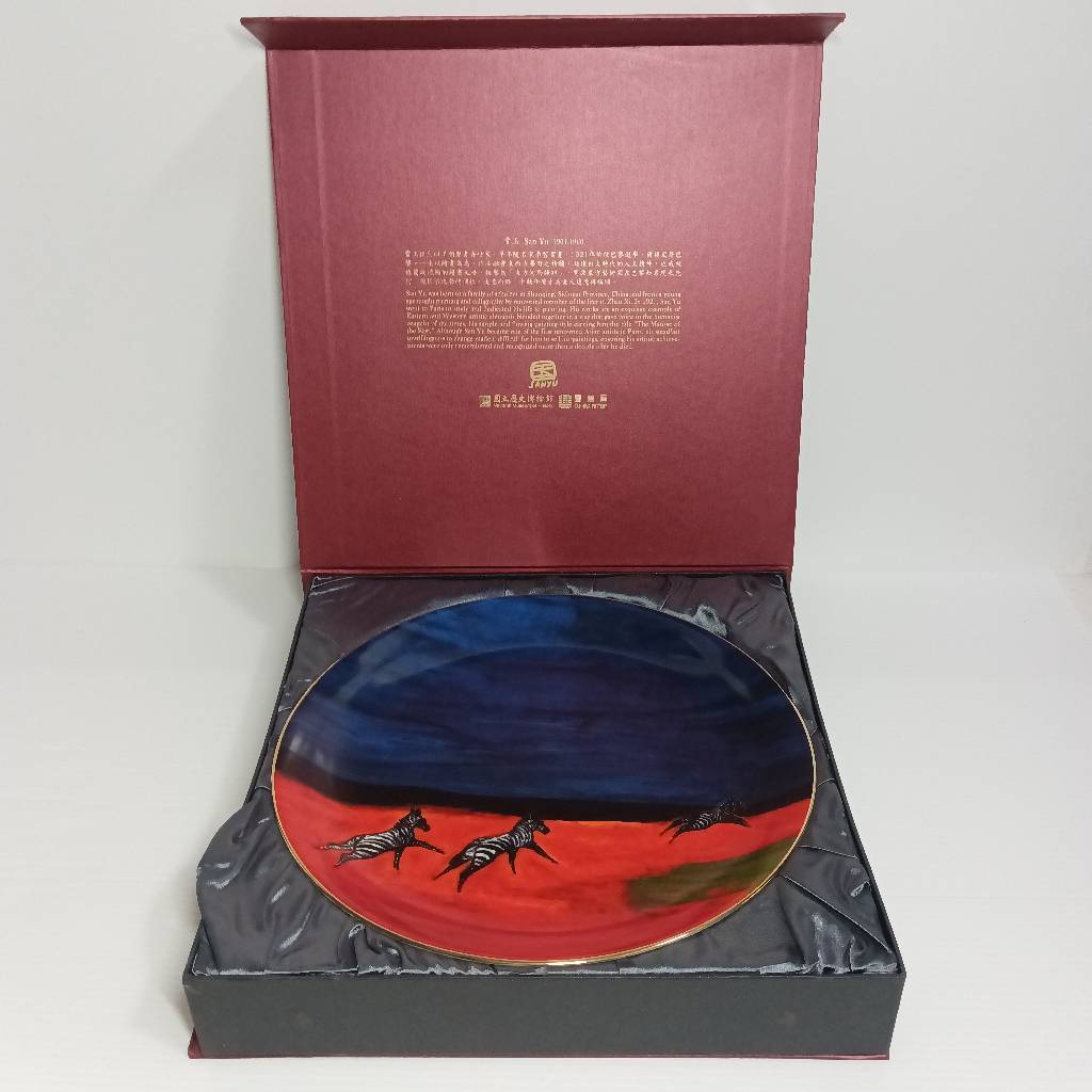 > 國立歴史博物館 常玉サンユ シマウマ アートプレート 皿 インテリア 飾り 綺麗 馬 シマウマ 芸術 美術 絵画 油絵 斑馬12吋金渡辺轉寫盤