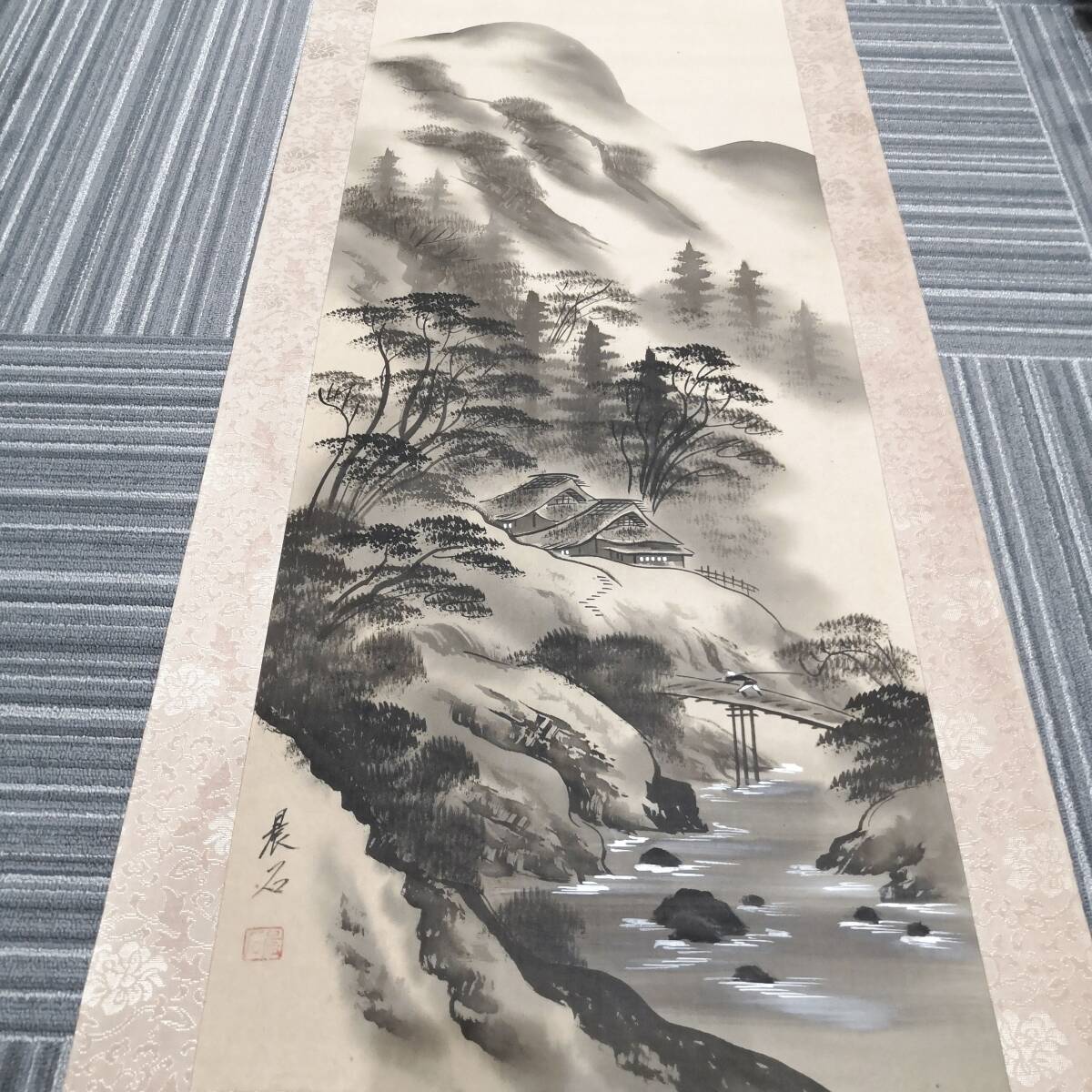 - 【272】山 風景 巻物 掛け軸 掛軸 日本画 骨董 日本書 伝統品 骨董品 時代物 年代物 美術品 芸術品 コレクション