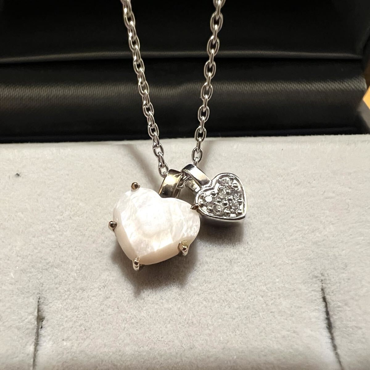 > スタージュエリー K18 ネックレス ダイヤモンド シェル ハート ホワイトゴールド ピンクゴールド 約3g