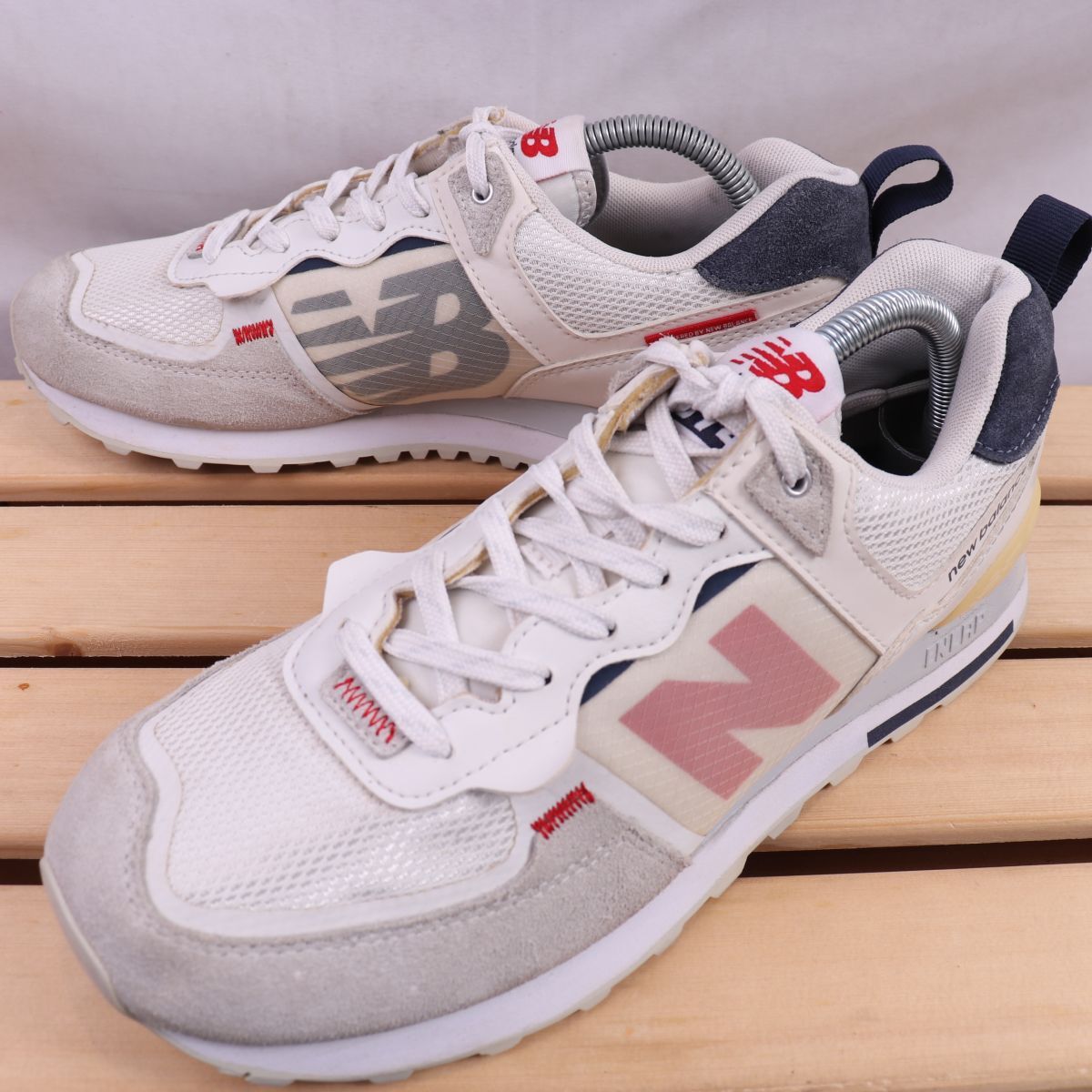 > z1976【574】ニューバランス US8.5 26.5cm/白 ホワイト ネイビー グレー 赤 newbalance メンズ スニーカー 中古