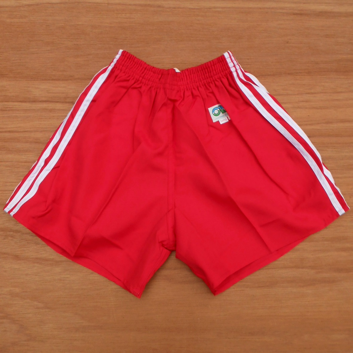 - 未使用 80s オウビ OWB ショートパンツ M レッド 3ライン 赤x白 ランニング 当時物 デッドストック 短パン 昭和 ランパン 体操服 体育 学校