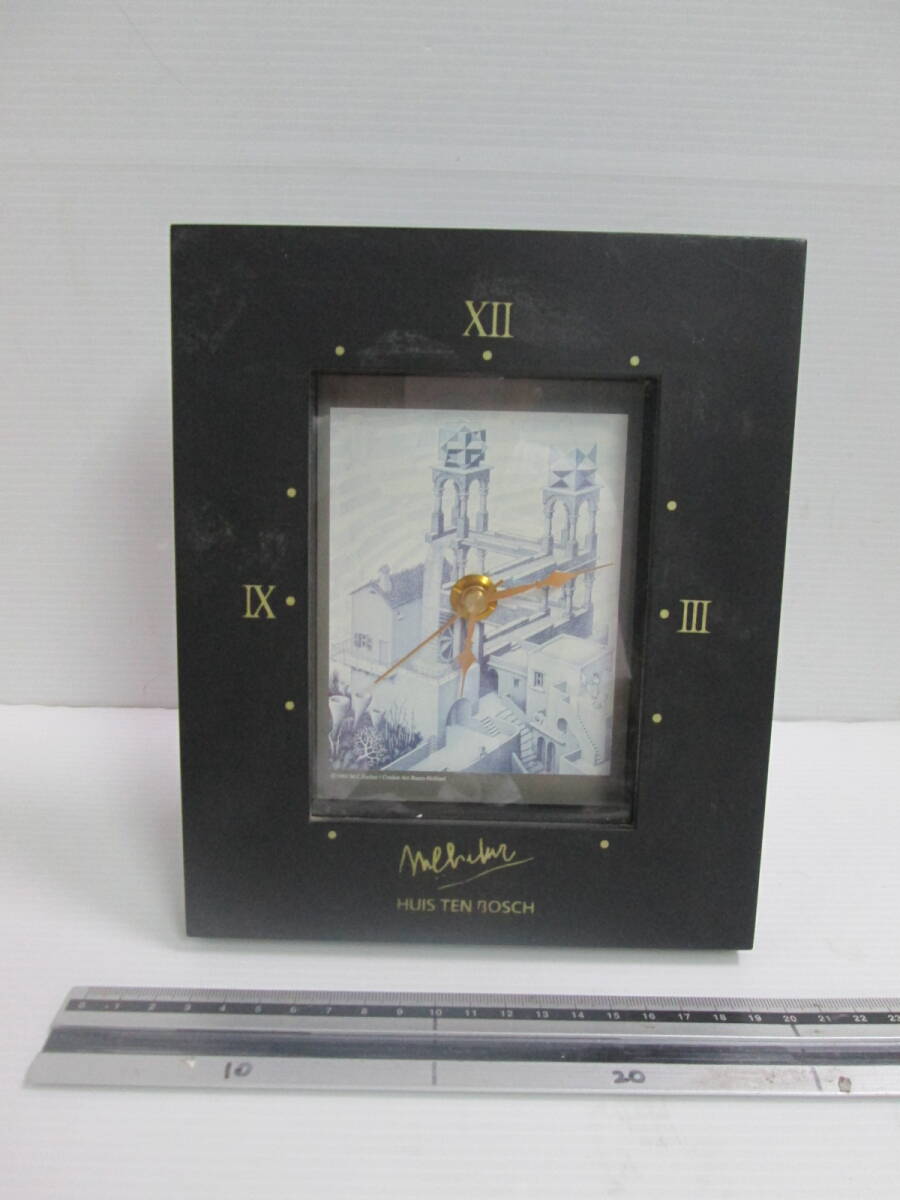 - MCエッシャー 上昇と下降 置きかけ時計 テストOK 文字にすこしいたみあり(画像3) H20cm 定型外発送可送料は商品説明欄に記入