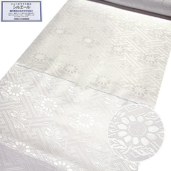 - [和楽屋] ■「礼装用 白色」細やかな地紋 紗綾形 向日葵 フォーマルに最適 ニューホワイト加工 防カビ 黄変防止 反物 正絹 長襦袢■