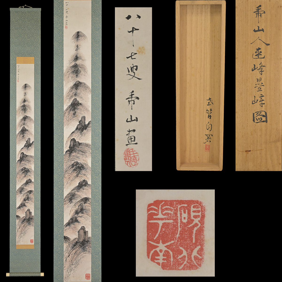 - ■ 甲斐虎山 連峰墨峰図 掛軸 共箱 大分 豊後南画 ys303