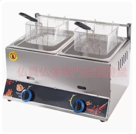 - 【寶勝堂】大型ガスフライヤー 8L+8Lダブルシリンダー フライヤー ステンレス鋼 揚げバスケット付き卓上フライヤー厨房機器 温度調整機能 L