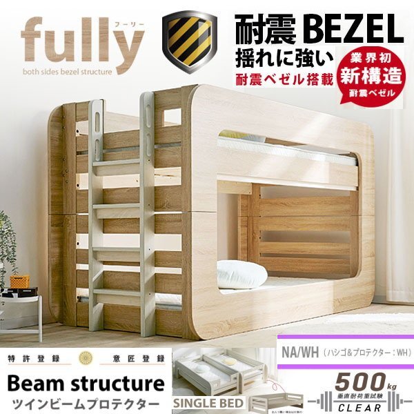 - 2段ベッド フーリー 高132cm 耐荷重500㎏構造 NA-WH ナチュラル-ホワイト 送料無料 業務用 揺れに強い 業界初 耐震ベゼル搭載
