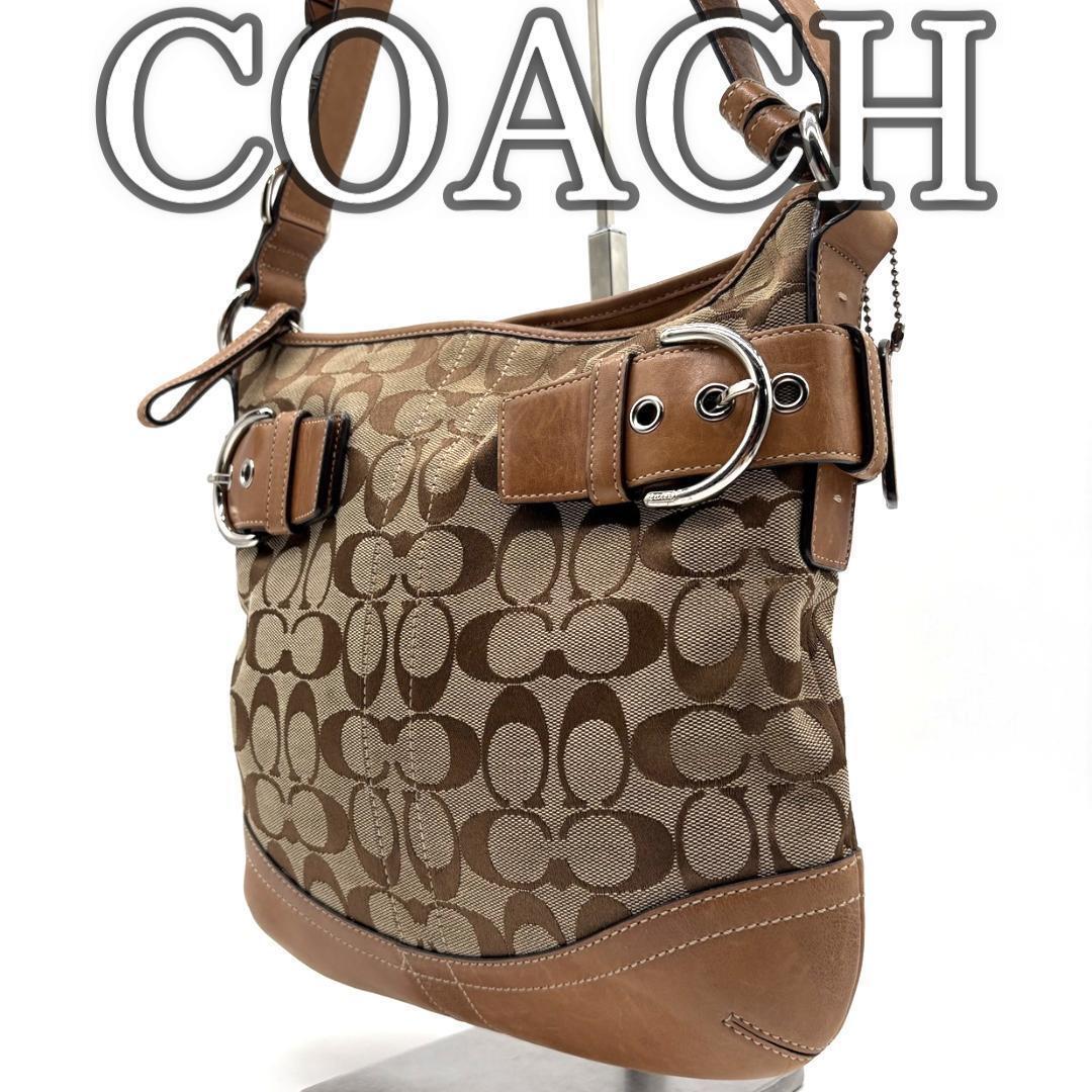 > 【良品】コーチ ショルダーバッグ キャンバス レザー ベージュ シグネチャー