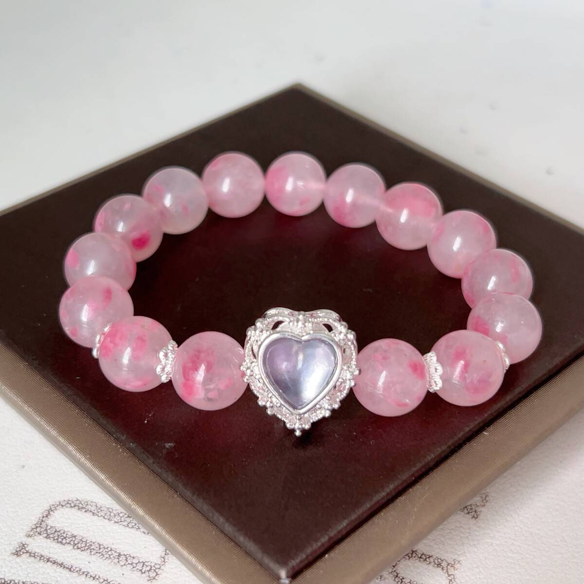> ◇ばら輝石(ロードナイト)+フローライト(螢石)◇ブレスレット◇天然石◇パワーストーン◇巾着袋付き◇プレゼントにも 034B91810