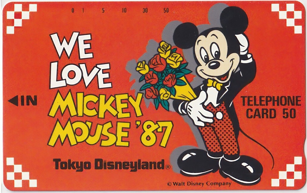 - =TDL= 「WE LOVE MICKEY'87 背景朱色」販売テレカ #23345