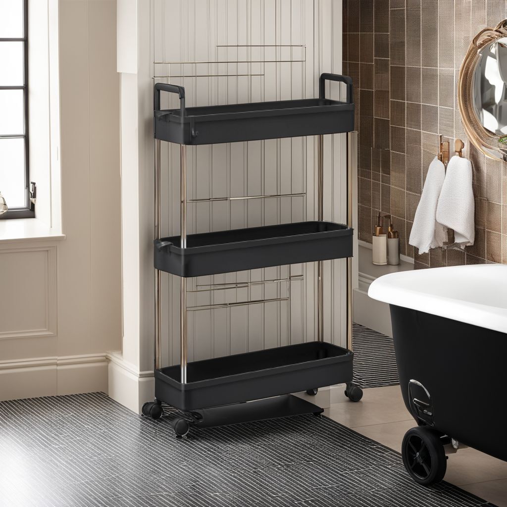 - 取っ手付き3段キッチンワゴン 隙間収納