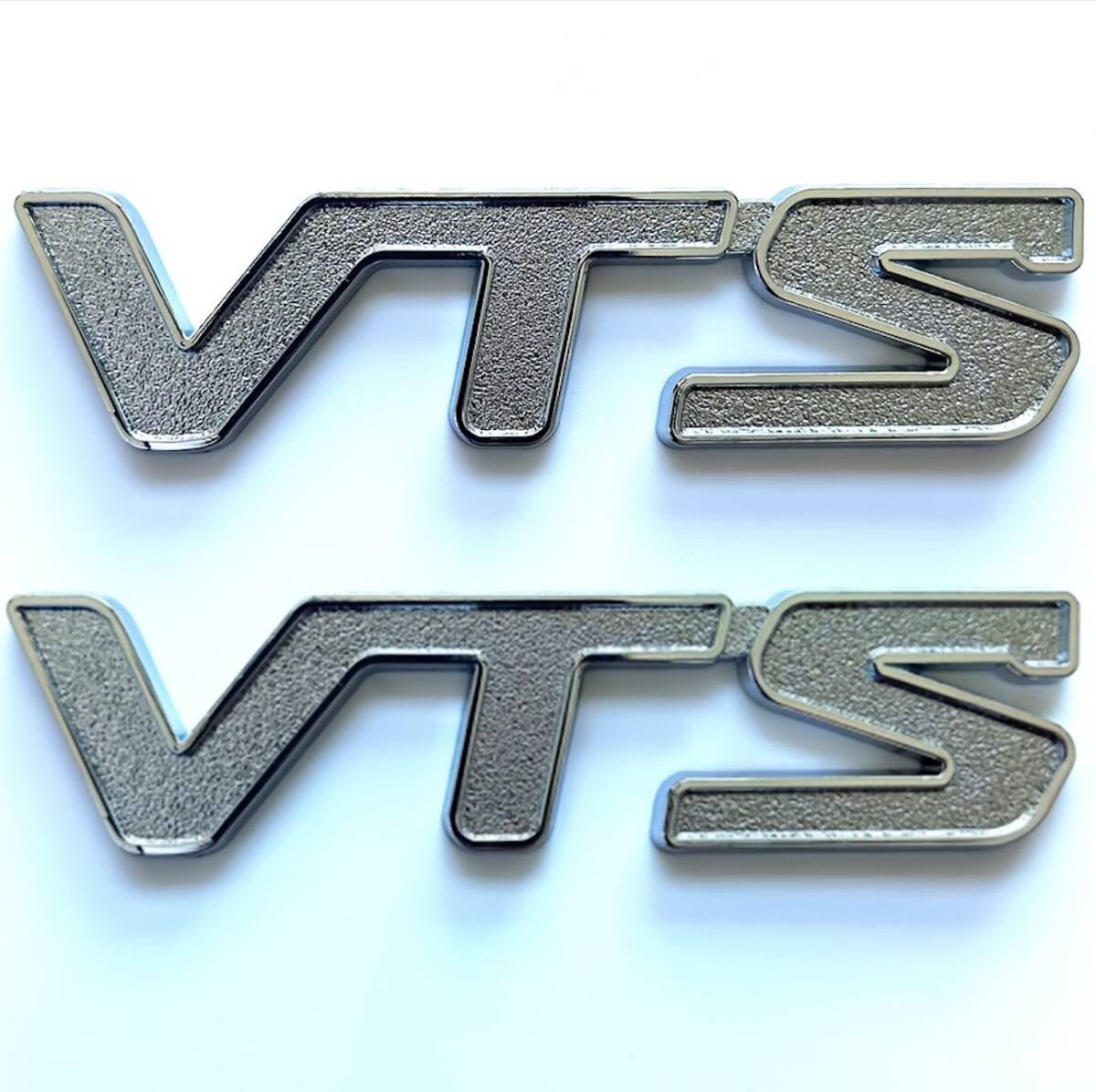 > 2個セット エンブレム VTS 金属 ステッカー 車用 シール 10cm シルバー メタル 貼り付け シール 3D 立体 おしゃれ バイク インテリア t8614